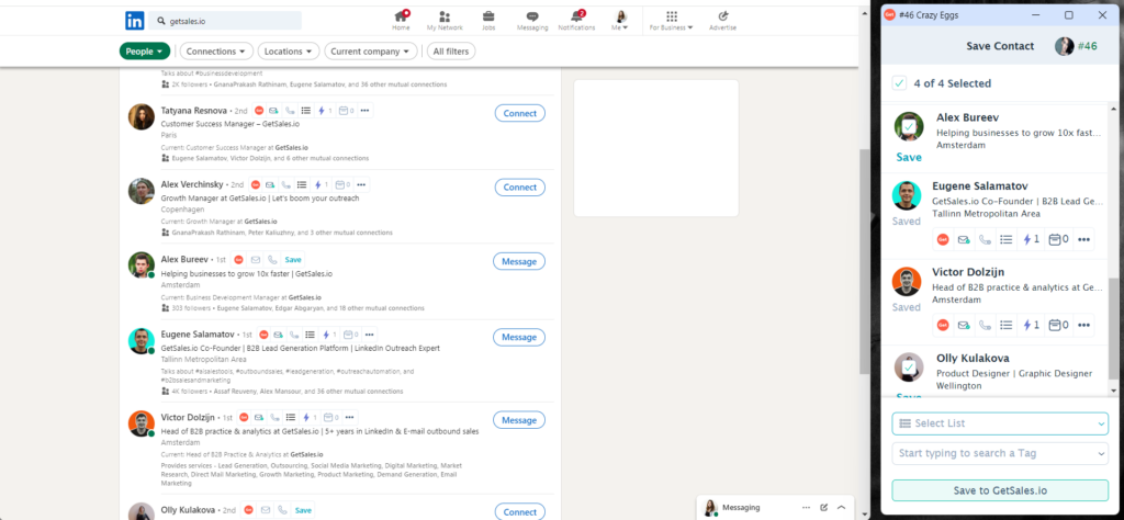 GetSales.io allows you to scrape data from various sections of LinkedIn profiles, including company information, job titles, contact details, locations, and much more. The most important thing is that GetSales.io allows you to effectively generate leads from LinkedIn while staying within the platform’s boundaries and maintaining your reputation.