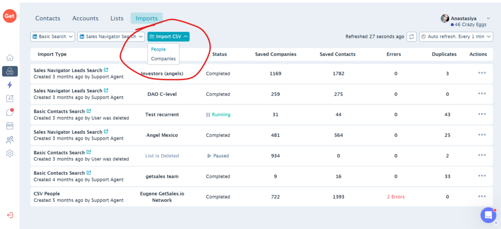 To enrich your current data, you need to import a CSV file or give a link to Sales Navigator search results. After that, you can use GetSales.io to enrich the data that you have.