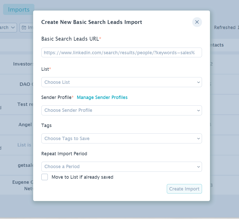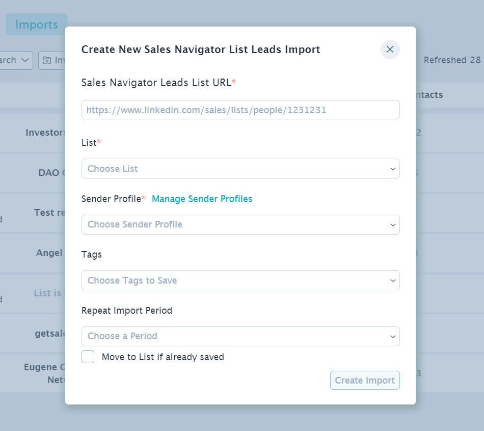 - Insert the link to the “Sales Navigator Leads List URL”.